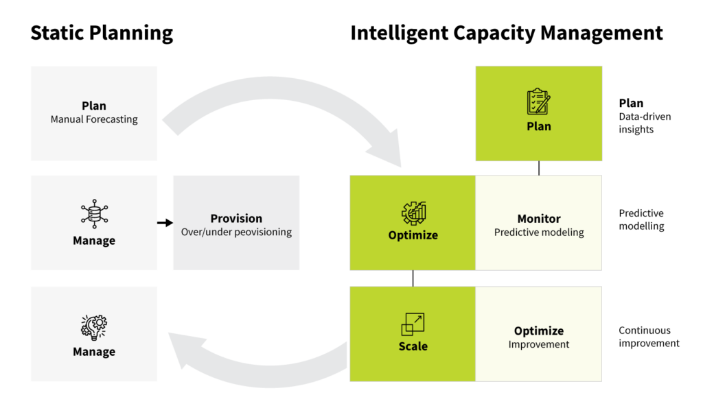 This is where AI-driven data center capacity management makes a critical difference. By leveraging machine learning algorithms, data centers can predict power surges, cooling inefficiencies, and network bottlenecks before they occur. AI continuously analyses patterns in energy consumption, workload distribution, and thermal behaviour, enabling autonomous optimisation of resources in real time. Instead of overprovisioning, an approach that drives up operational costs β AI ensures resources are allocated dynamically based on live demand and predictive insights.